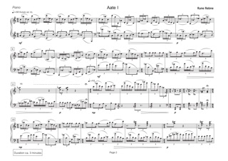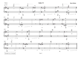 Aate I-IV is a poetic and virtuosic work with layers and lines that weave in and out of each other, where the material in the left and right hands alternates between individuality and coincidence. Part 1 serves as a source of musical gestures that are developed in Part 3, where Part 3 aims to make the entire piano resonate between intensity and tenderness. Part 2 receives its memory and tonal shadow in Part 4, which recalls Part 2 by filtering, adding, and compressing the material from Part 2. The piece is intended to function so that its parts are interwoven in the same way as the musical material is woven, mirrored, and held onto itself, thereby developing throughout the entire work. In the piece, poetic lingering and eruptive intensity are juxtaposed, and the idea is to show the beauty of the piece in various ways.