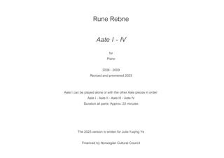 «Aate I-IV» is a four-part 20 minutes work for solo piano and it is released on the recording «Vegom» in 2025 performed by the brilliant Julie Yuqing Ye